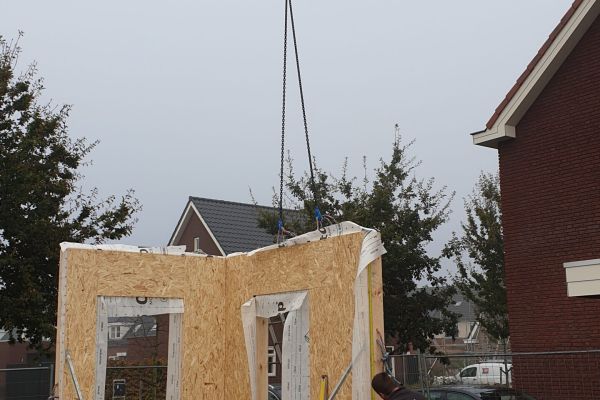 - Het huis van 140 m2 werd vervoerd op 2 vrachtwagens