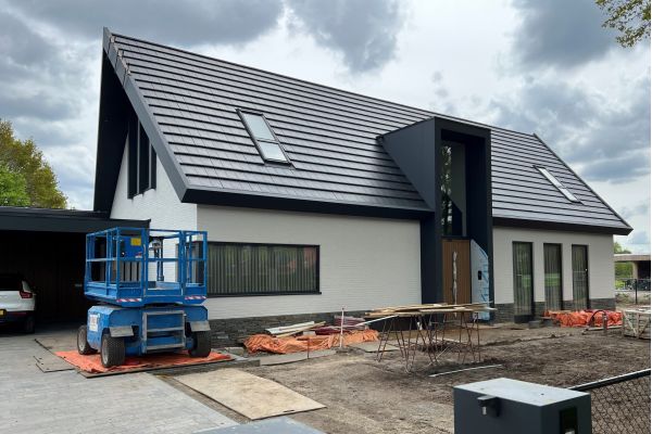 Vrijstaand nieuwbouw huis met zonnepanelen, energieopslag in batterijen en een energie management systeem voor optimalisatie. Daarnaast een systeem voor opslag (40 m3) en hergebruik van regenwater voor toiletten, douches, wasmachine en tuinberegening.