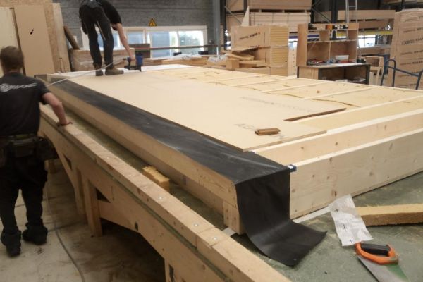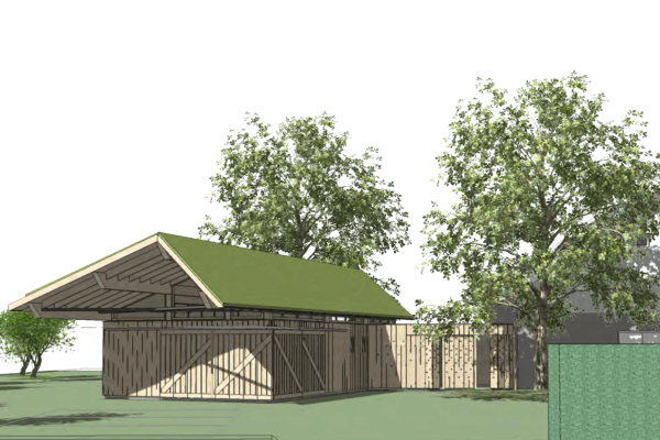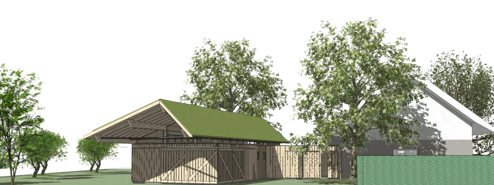 De aanbouw bestaat uit een nieuwe entree, kantoor en schuur. Het wordt volledig in hout gebouwd en voorzien van een groendak en enkele extra PV panelen. Bij de materialen keuze is zoveel mogelijk gekozen voor natuurlijke materialen en wordt de aanbouw net als de woning goed geïsoleerd (Rc-waarde 5). Waar geen natuurlijke materialen mogelijk zijn (zoals de fundering) is gekozen voor hergebruik of milieuvriendelijke alternatieven. Zo is het beton is 30% betongranulaat (gerecylend beton) toegepast en riolering aangelegd met PE (en niet met PVC). De kozijnen worden gemaakt met accoya hout en de gevelafwerking is met thermisch verduurzaamd populierenhout uit Nederland.