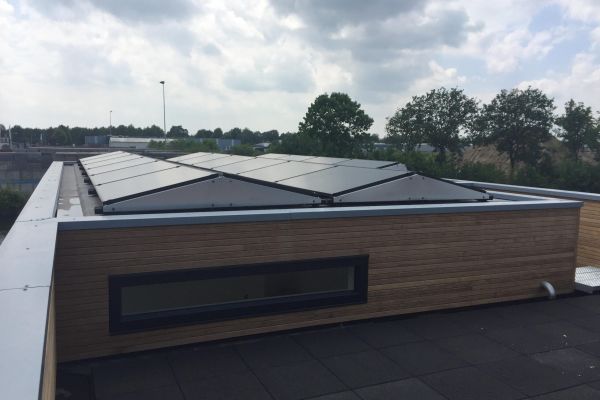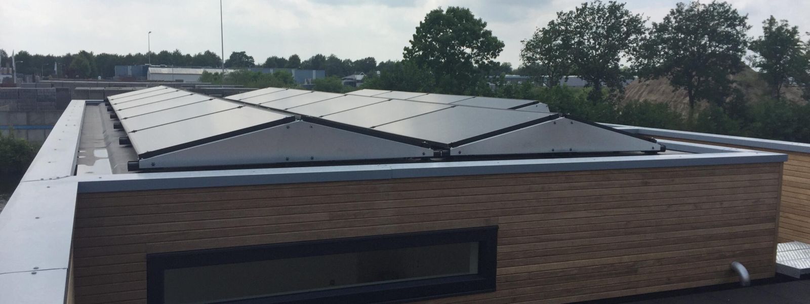 Onze gasloze ark is in de zomer van 2019 opgeleverd. We verwarmen de hele ark met infrarood panelen. Voor warm water hebben we een elektrische doorstroom verwarmer (instant heater van Clage). We hebben 28 zonnepanelen in oost/west opstelling (voor gelijkmatiger opwek gedurende de dag en dus meer direct eigen gebruik). Totale opwek van de zonnepanelen is ongeveer 7.000 kWh per jaar. We zijn extra goed geïsoleerd. Ons jaargebruik is ongeveer 5.500 kWh. Het naastgelegen – kleinere – appartement verwarmen we ook met IR-panelen. Warm water ook met een instant heater. De stroom van 8 – van de 28 – panelen gaat direct naar het appartement.