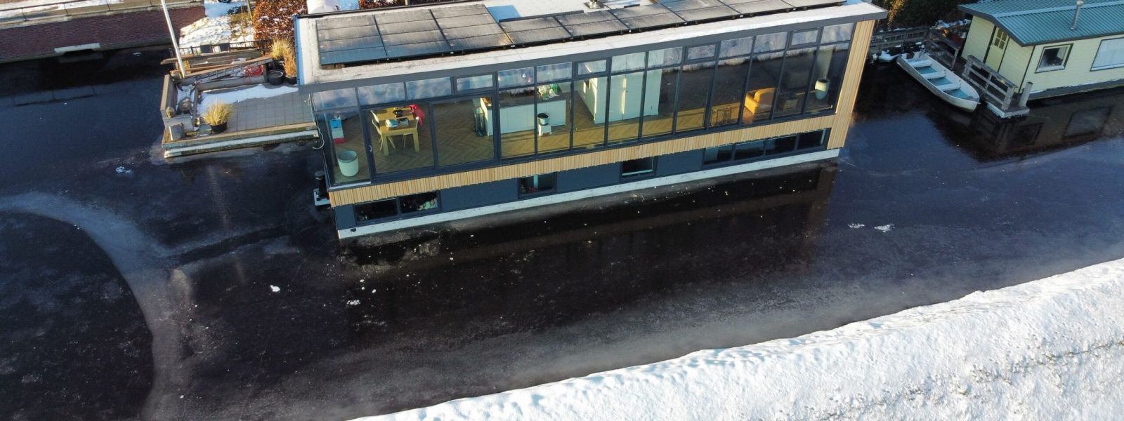 Deze nieuw gebouwde woonark is volledig gasloos. Er is extra aandacht besteed aan de basis isolatie met 18cm dikke PIR platen, triple glas en geïsoleerde bak. Verwarming gebeurt middels een stille REMKO Warmtepomp gekoppeld aan een 1.000 Liter combi Boiler/Buffer. Energie wordt opgewekt met Duitse Glas/Glas panelen gekoppeld aan een innovatieve Zweedse DC omvormer die zorgt voor Fase balancering om de aansluitwaarde zo klein mogelijk te houden. De Omvormer laadt de 11kW accu die wordt opgesteld. De Laadpaal op eigen terrein zorgt er voor dat de auto direct op zonne energie wordt geladen. Daarnaast is de laadpaal voorzien van Dynamic Load Balancing zodat er in combinatie met de slimme meter nooit meer stroom gebruikt wordt dan dat de aansluiting groot is.
