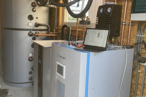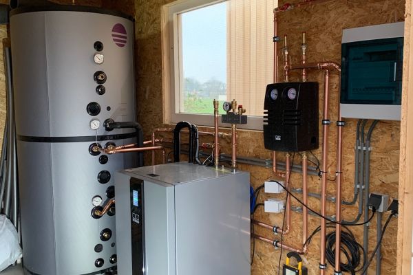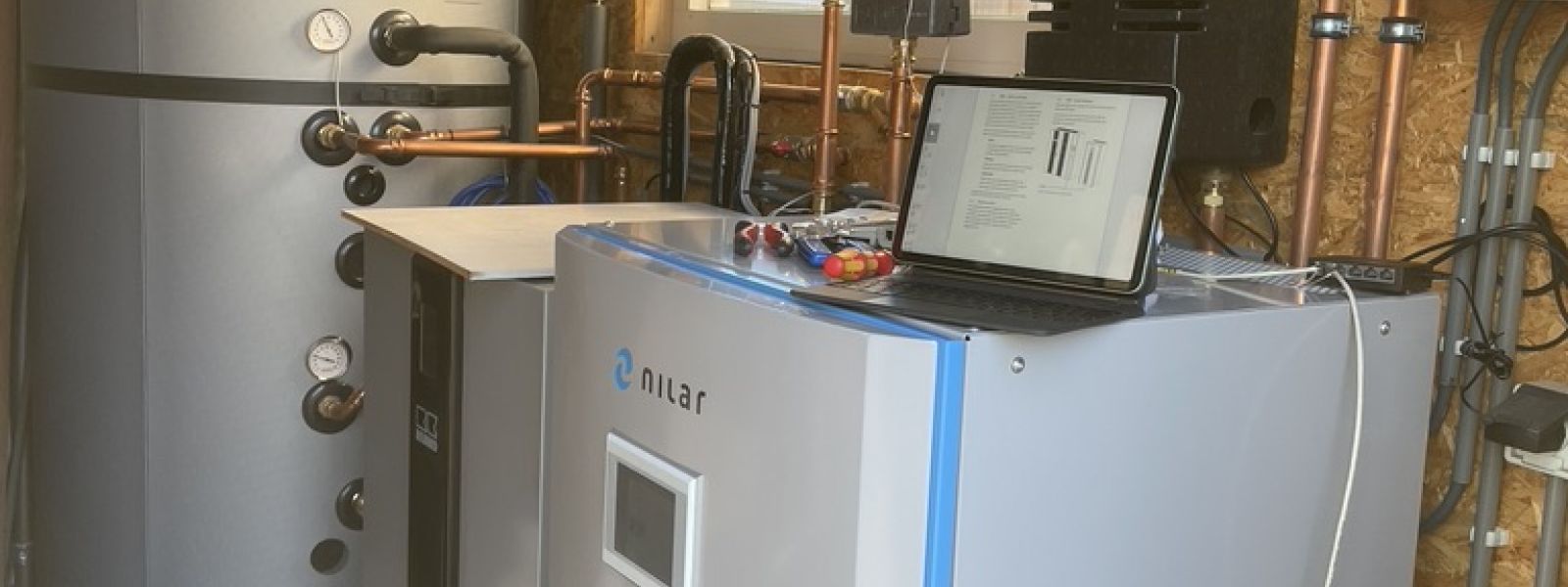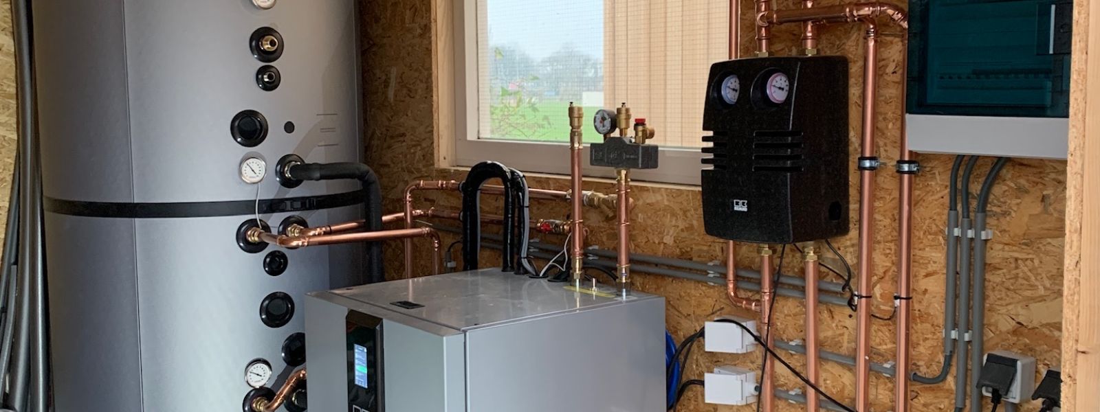 Energie voorziening middels: 30 SolarWatt Glas/Glas zonnepanelen Zweedse FerroAmp Nanogrid DC omvormer NiLar Accu 11kW Fluisterstille REMKO HTS Lucht/Water Warmtepomp 1.000 Liter Förstner Combi Buffer/Boiler