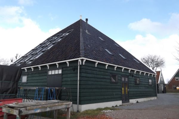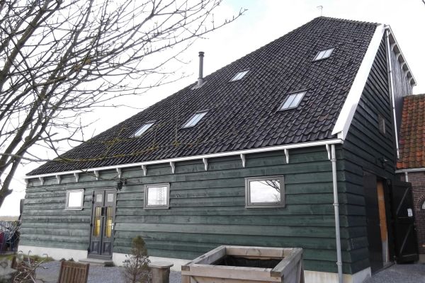 Voormalig koestal met kapberg en twee afluivingen uit 1914, dat in 2012 geheel gerestaureerd is inclusief funderingsherstel.Op de begane grond bevindt zich nu een timmerwerkplaats en boven in de kapberg een bedrijfswoning.Waar het kan hebben wij in de vloer/wanden/dak geïsoleerd met een RC waarde van 3,5. Destijds was er geen beter materiaal verkrijgbaar voor restauratietoepassingen. Alle ramen zijn uitgevoerd in HR++ glas.De begane grond vloer in de timmerwerkplaats wordt verwarmd door middel van vloerverwarming. De hele boerderij inclusief het houten voorhuis wordt warmgestookt door middel van een houtgestookte CV-ketel. Deze is computergestuurd en ook op afstand te bedienen met een smartphone of tablet. De houtketel gebruiken we tevens voor heetwatervoorziening om te douchen en de vaatwassers zijn voorzien van hotfill. Wij koken op inductie, waardoor wij sinds 2013 geen gasaansluiting meer hebben. De houtsnippers die we opstoken maken we zelf met een elektrische breker van schoon houtafval uit de timmerwerkplaats. Hierdoor is de hele boerderij CO2 neutraal verwarmd.Op de westkant zijn zonnepanelen aangebracht met het indak systeem. Tussen de lichtstraten die een actieve buitenzonwering hebben van Velux. We maken voornamelijk gebruik van TL en led-verlichting.Het woonhuis in de kapberg wordt geventileerd door middel van vraaggestuurde ventilatie van Duco d.m.v. CO2 en RV sensoren. De frisse lucht komt binnen via raam- en gevelroosters die zelfregulerend zijn.Sinds september 2016 hebben we een waterontharder aangesloten, waardoor er minder gebruik van shampoo, wasmiddel en reinigingsmiddelen nodig is. In 2019 is ook de 1e verdiepingsvloer van de kapberg voorzien van vloerverwarming. Deze is ingefreesd in een fermacell ondervloer en afgewerkt met Eiken houten vloerplanken.