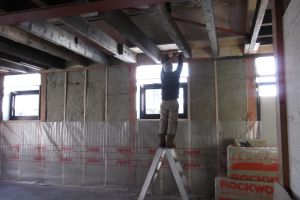 De keuze van steenwol ten opzichte van de andere producten is vanwege de akoestische isolatiewaarde.