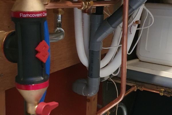 Geen trillingen door dubbele rubbers. Nauwelijks geluid door 8 kw power (overcapaciteit) die veel minder gebruikt. De pomp geeft vocht af.