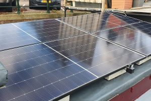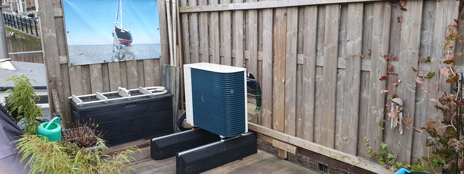 Stalen schjip type Steilsteven in 1916 gebouwd in Hoogezand. Begin 2022 een Hybride Warmtepomp en Zonnepalen geplaatst naast de bestaande en beperkte isolatie aan ramen/wand/dak. Vanwege budget, keuzes gemaakt: 8 ZONNEPANELEN (door ligging boot en bomen het maximum) + 8 KW HYBRIDE WARMTEPOMP van Daikin-Intergas op oorspronkelijke plaats van CV + Honeywel thermostaat, Buffervat en Bypass.Daarnaast nog aanpassingen o.a. warmte-vloerkleed in woonkamer; het compartimeren in de boot ’s winters; het fijntunen van ECO gebruik van warmtepomp en watergestuurd ingestellen radiatoren. Ook kleine aanpassingen helpen voor minder CO2 uitstoot, een lagere maandnota en goed comfort bij beperkte isolatie.