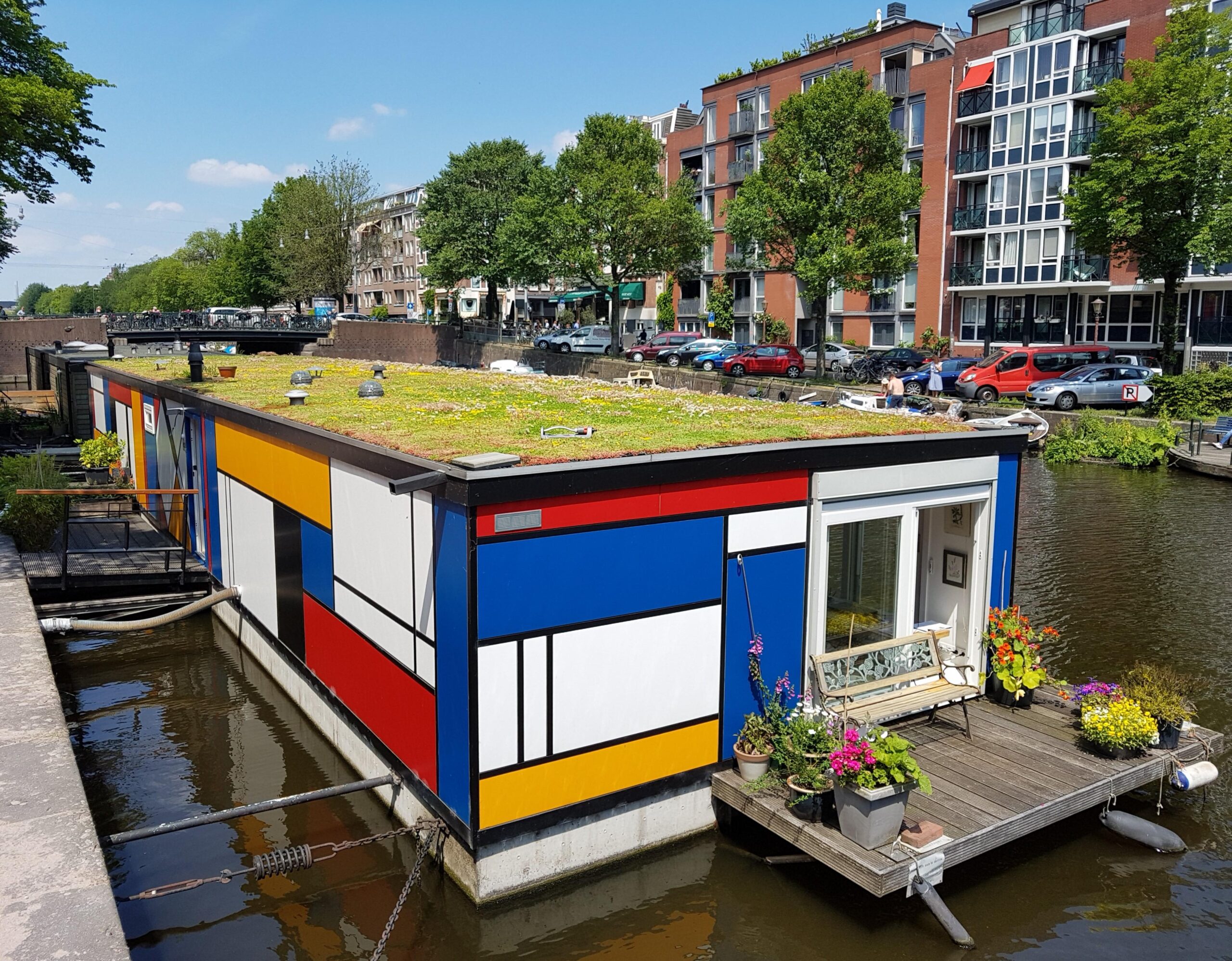 Wij wonen in woonboot Piet. Daar hebben we in 2017 een sedum dak op laten leggen. Jammergenoeg kunnen we dit zelf niet zien, maar de buren die er op uitkijken zijn er blij mee. In de zomer is het merkbaar koeler, het scheelt wel een graad of 2. Ook ’s winters houdt het de warmte binnen en de kou buiten. Onder de vloer hebben we Tonzon isolatie. Ook dat scheelt. We hebben inmiddels ook warmtefoto’s laten maken en op grond daarvan zijn er kieren gedicht en extra tochstrips aangebracht. De radiatorfolie achter de radiatoren zijn inmiddels ook aangebracht. We zijn nu bezig met het uitzoeken hoe we van het gas af kunnen. Als proef hebben we de cv ketel op 50 graden gezet om te kijken of we de boot daarmee voldoende warm kunnen krijgen. Ook hebben we 10 zonnepanelen op het dak van een naburige school.