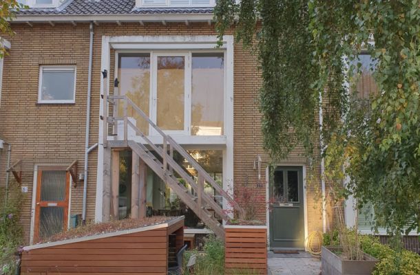 – gebruikte materialen zoals hergebruikt-EPS van een dak van een school, vloer en dakbalken van een sloop project in Monnikendam