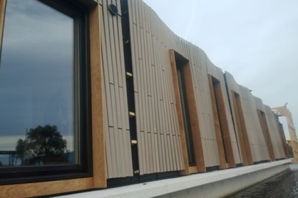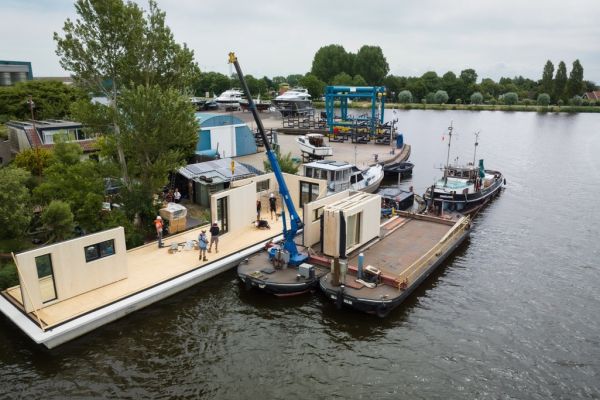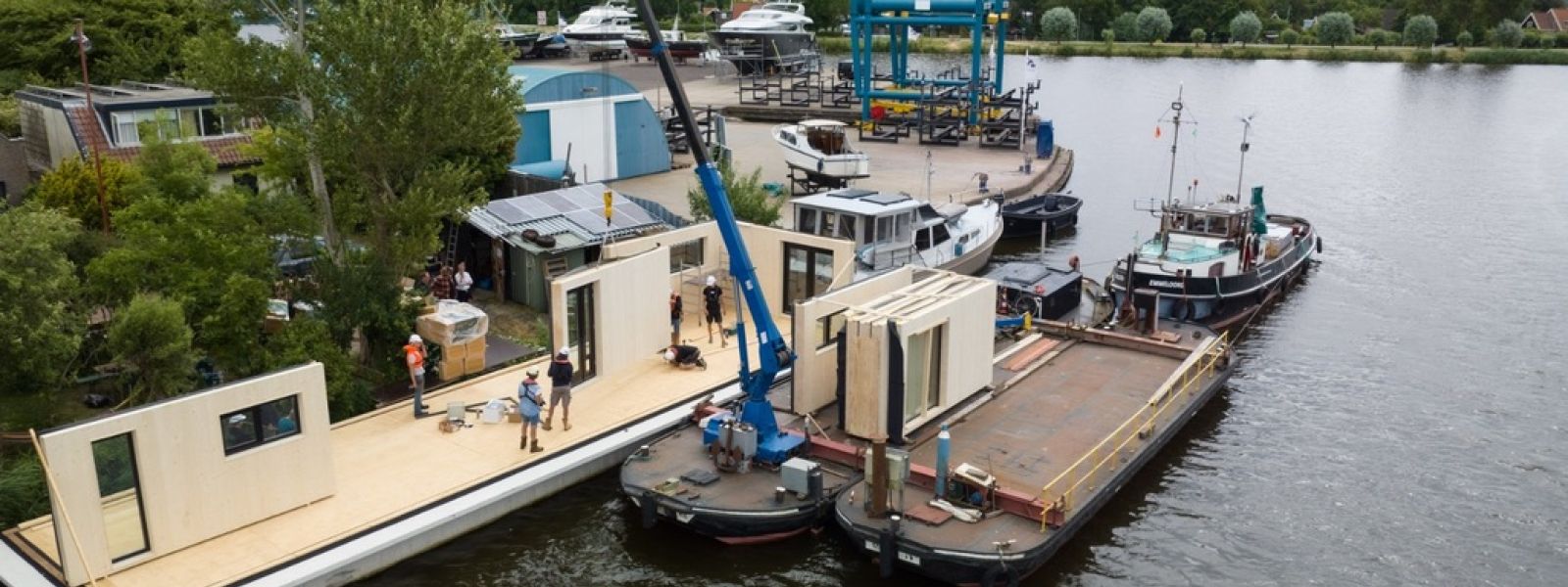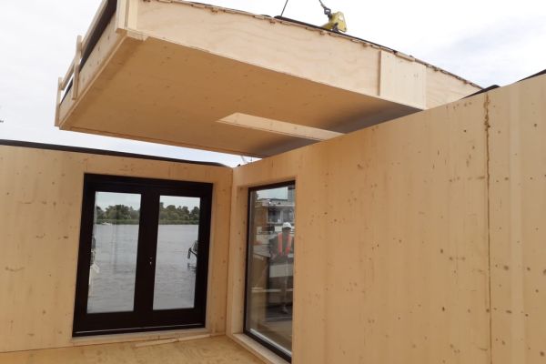 Nieuw gebouwde woonark modulair CNC-gefreesd, biobased gebouwd. Veel aandacht voor passieve manier van bouwen, tripple glas, 45cm houtvezel geïsoleerde wanden, vloer en en dak, houten spijkers bij plaatsing binnenwanden, wtw-systeem en zonnepanelen. Infrarood verwarming.