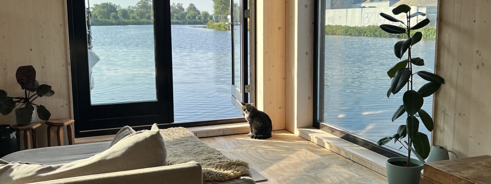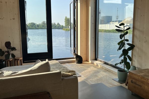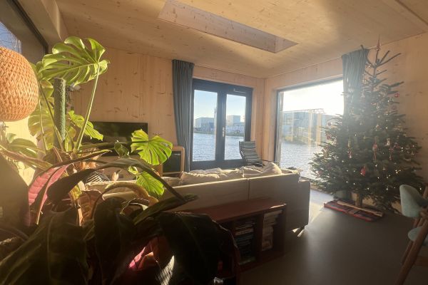 We wonen sinds een half jaar met veel plezier, bewondering en comfort in deze woonark. Het binnenklimaat is door de manier van bouwen en met de keuze voor natuurlijke materialen enorm aangenaam.