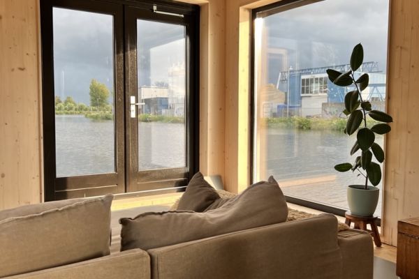 We wonen sinds een half jaar met veel plezier, bewondering en comfort in deze woonark. Het binnenklimaat is door de manier van bouwen en met de keuze voor natuurlijke materialen enorm aangenaam.