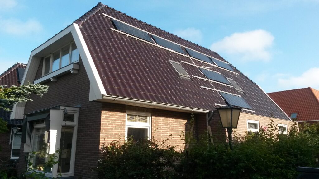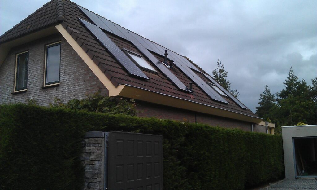 De woning en het warme water wordt verwarmd door de zon. Electra afkomstig van zonnepanelen