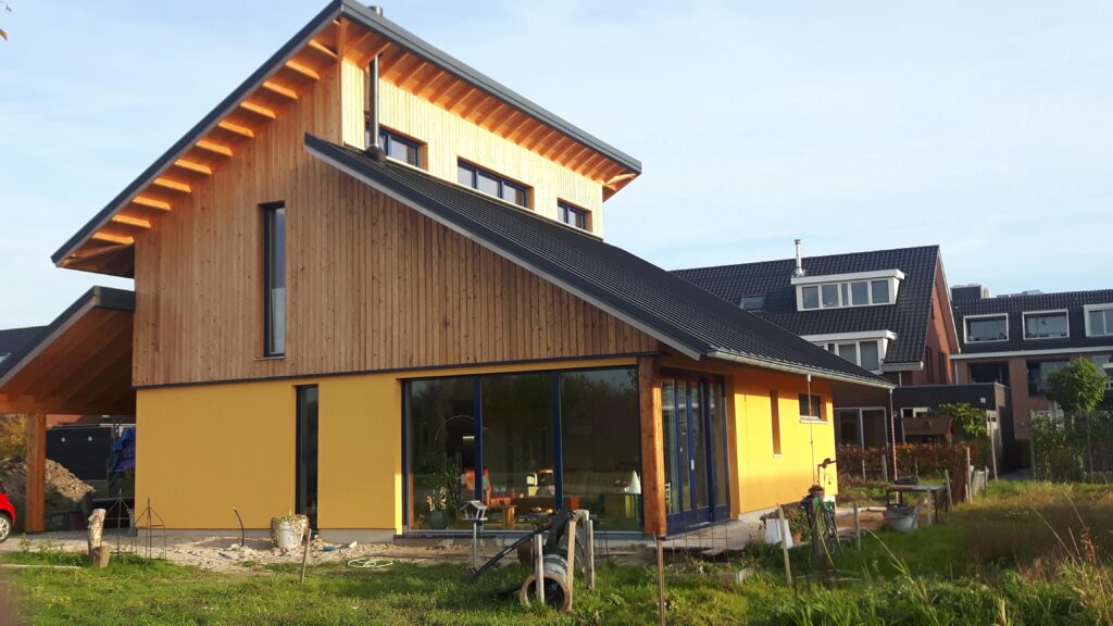 Gasloze woning met ecomaterialen. o.a. met – Lucht/water warmtepomp- Regenwater hergebruik- Zonnepanelen